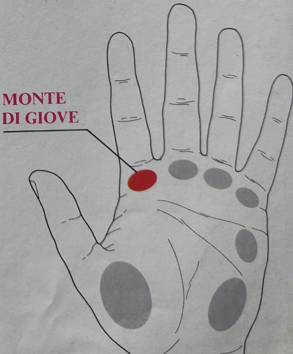 Dopo il Monte di Venere, consideriamo il Monte di Giove, situato alla base del dito indice.