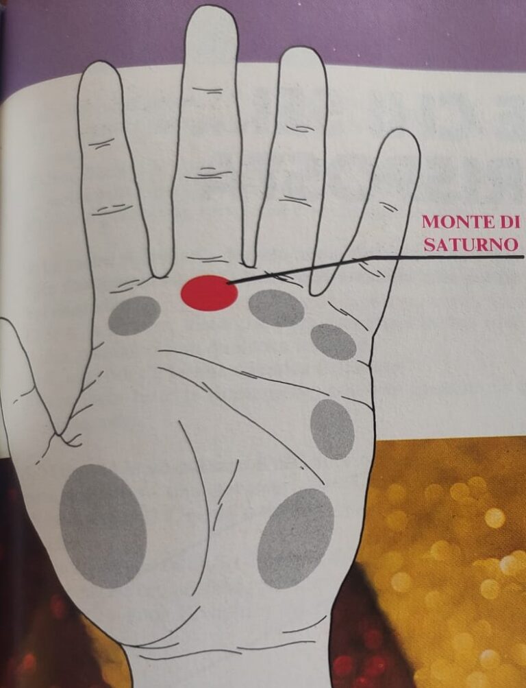 Il cosiddetto “monte di Saturno” si trova alla base del dito medio. Molti grandi pensatori – e molti grandi Santi – lo hanno avuto particolarmente sviluppato, ma anche molti uomini d’azione lo hanno annoverato fra le loro caratteristiche. Napoleone Bonaparte ebbe il “monte di Saturno” ben disegnato e straordinariamente “colorito”;