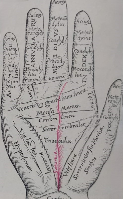 Contrariamente a quanto mostra l’illustrazione sopra, tratta da un trattato cinquecentesco di Girolamo Cardano (De rerum varietate libri XVII), la linea di Saturno è una delle meno facili da individuare e da “leggere”. Il suo tracciato, tuttavia, anche se considerato tra quelli secondari, può essere carico di significati indicativi.