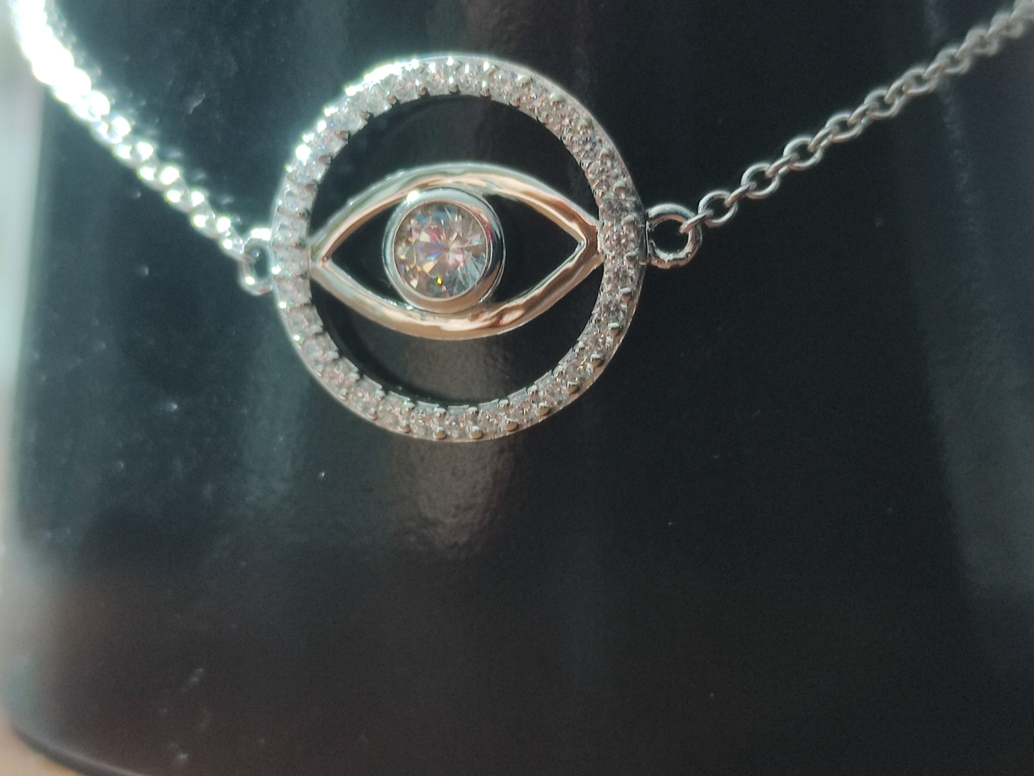 Dettagli. Il bracciale è realizzato in argento. Il ciondolo occhio da 16 mm è realizzato in argento sterling 925.